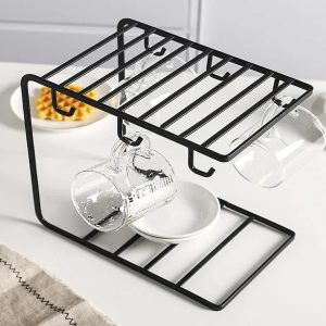 - 2-tier mug holder with 6 hooks for coffee and tea mugs