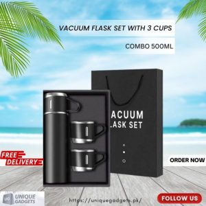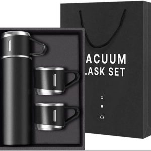 Made of food-grade stainless steel, the Stainless Steel Vacuum Flask Set, 500ml with 3 cups is durable and easy to clean. it can be used for a long time.